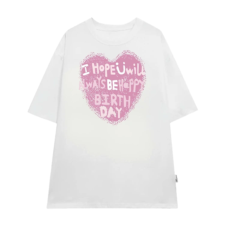 Áo Thun Form Rộng In Trái Tim Birthday Cute – Cotton Mềm Mát Unisex Nam Nữ