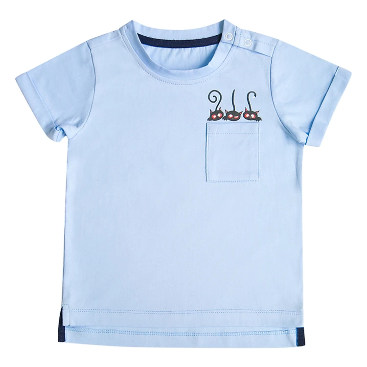 - Áo thun được in hình mèo con sẽ làm bé trai thêm thích thú khi mặc. Sở hữu màu xanh bắt mắt, áo cũng tạo vẻ năng động và thanh lịch cho các chàng hoàng tử nhỏ.