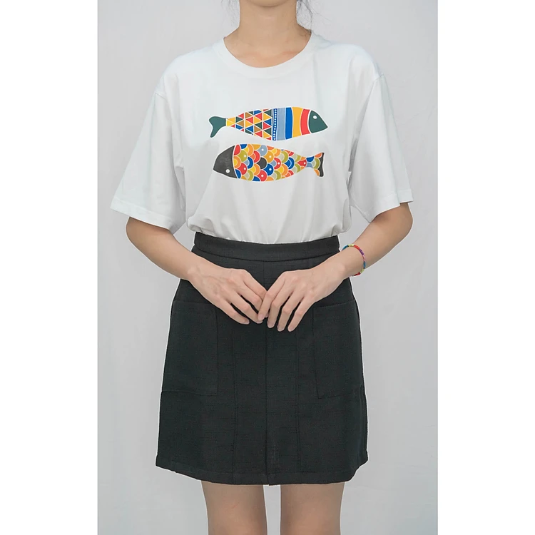 - Áo thun in song ngư Adela Moda - L - trắng - A00533 in hình cá lạ mắt, xinh xắn.