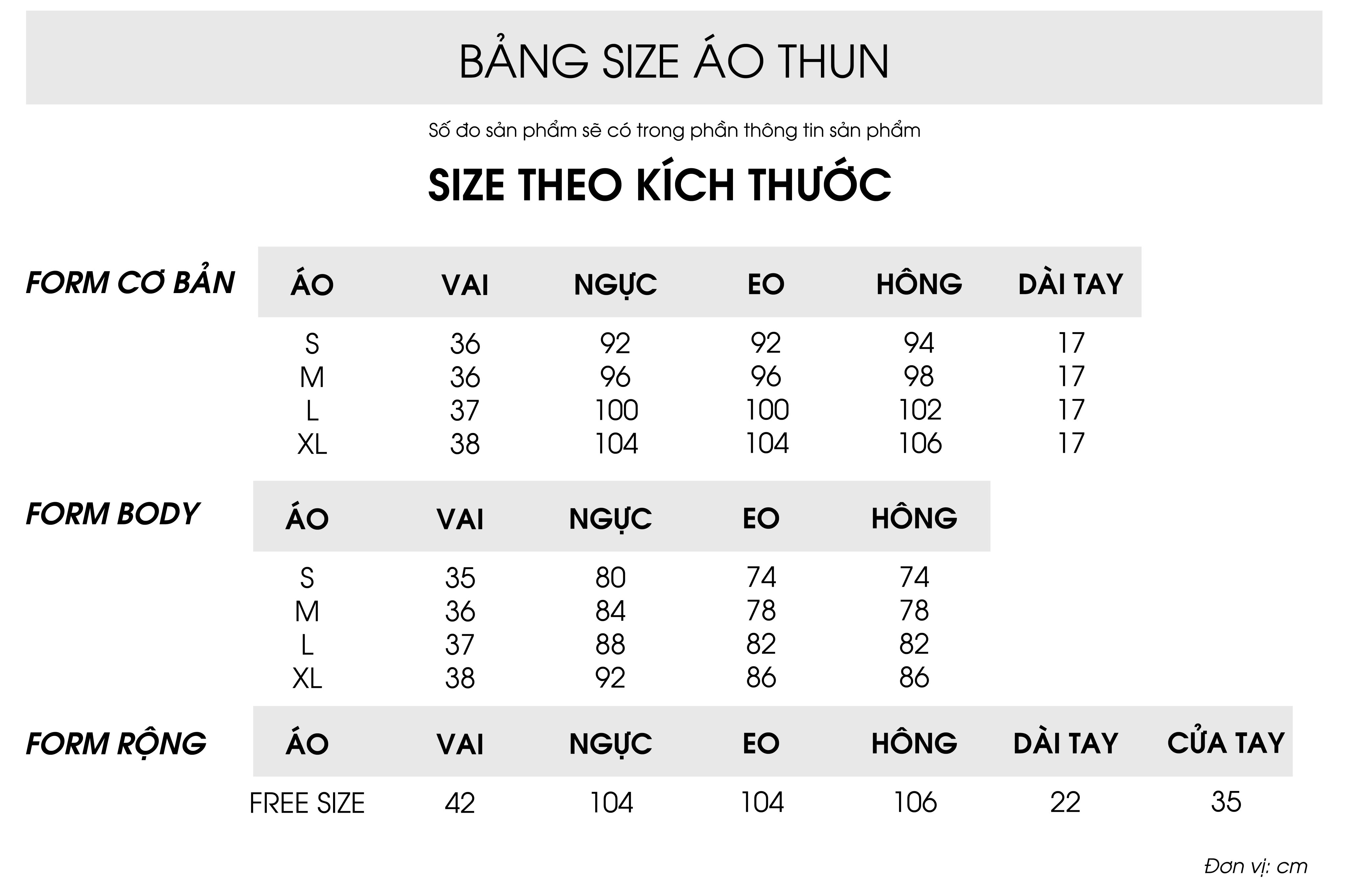- Vui lòng tham khảo bảng size dưới đây: