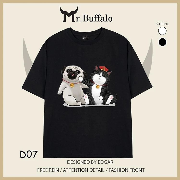 Áo Thun Mr.Buffalo đôi, cặp Tshirt Cotton 100% Unisex Form Oversize Local Brand D07D08