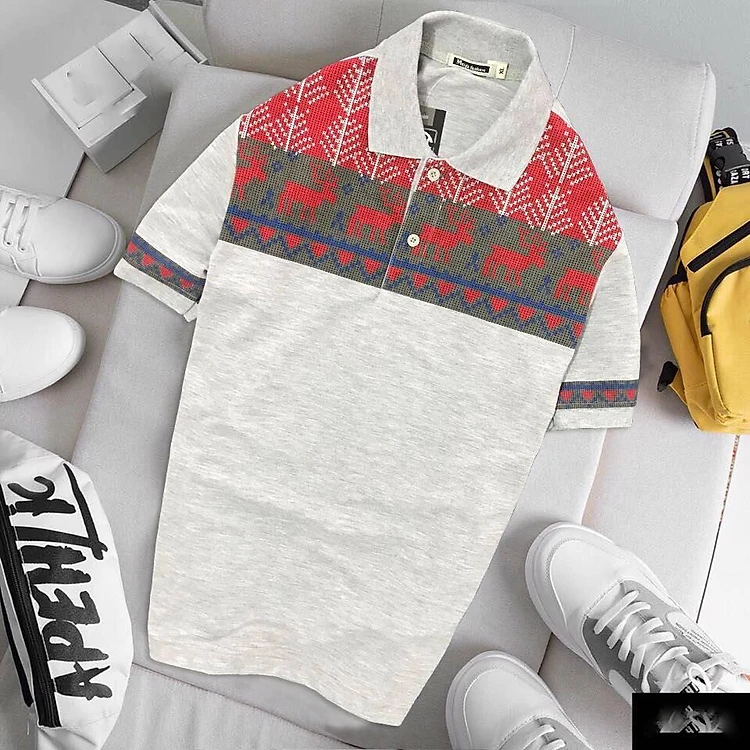Áo thun nam cổ bẻ họa tiết kiểu thổ cẩm