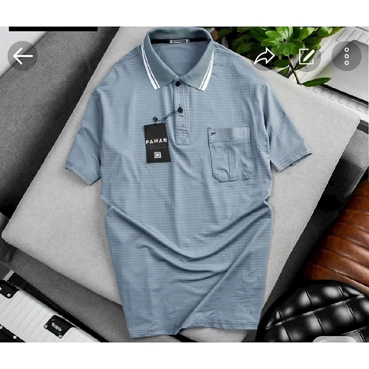 Áo thun nam cổ bẻ kiểu trơn có 1 túi áo