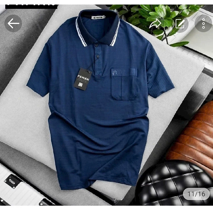 Áo thun nam cổ bẻ kiểu trơn có 1 túi áo