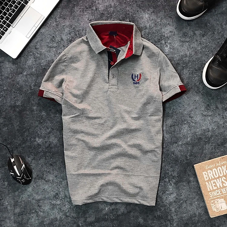 ÁO THUN NAM CỔ BẺ NAM TÍNH THÊU CHỮ H NGỰC TRÁI, CHẤT THUN CÁ SÁU 65/35 THẤM HÚT MỒ HÔI- LZPS046