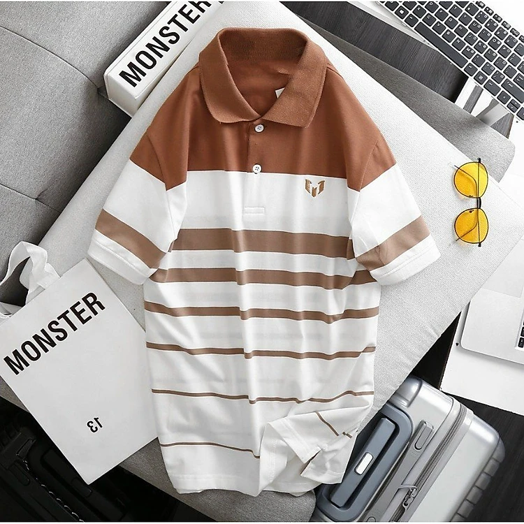 ÁO THUN NAM CỔ BẺ PHỐI SỌC
