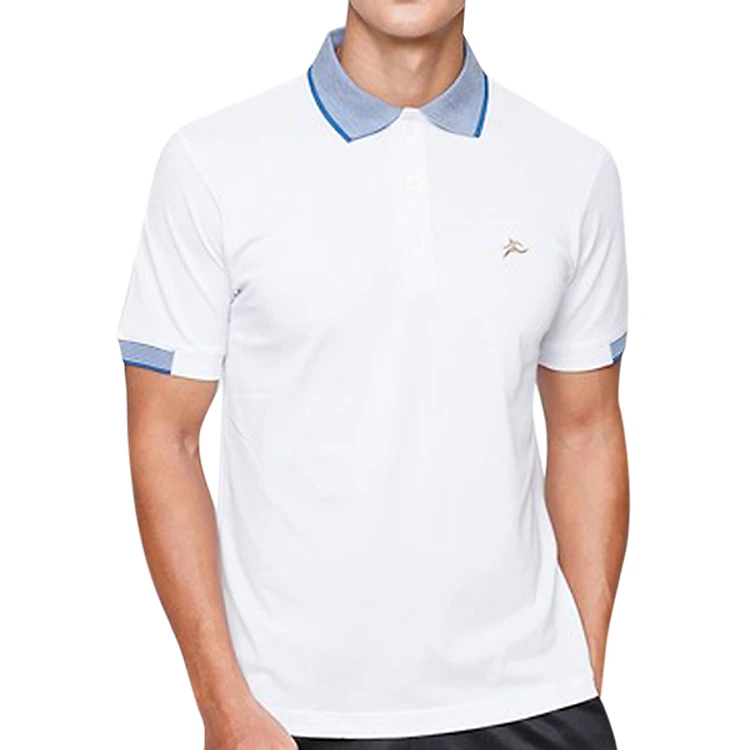 Áo Thun Nam Cổ Dệt Sọc Colo (Trắng Phối Xanh Dương)