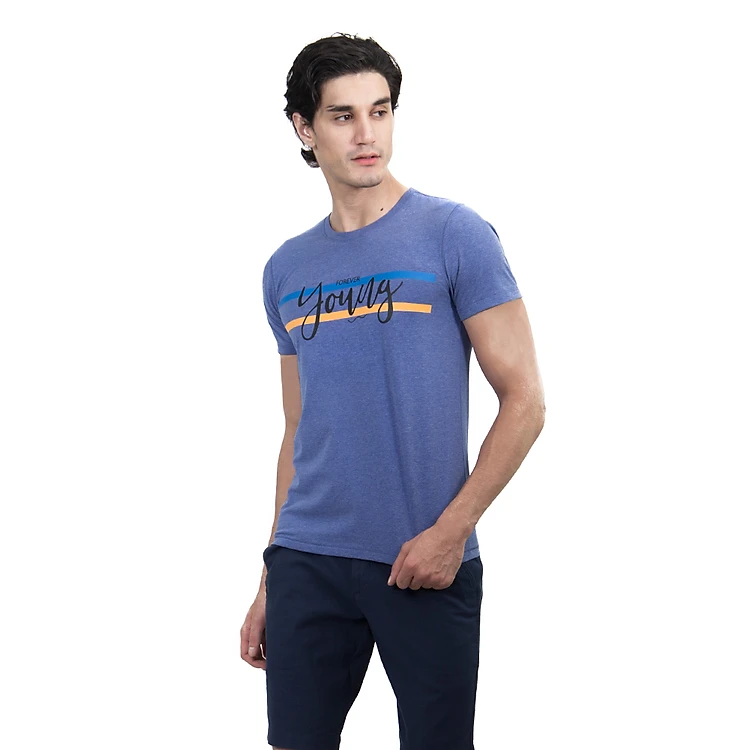 Áo thun nam cổ tròn in họa tiết màu xanh bích NOVELTY 200001N