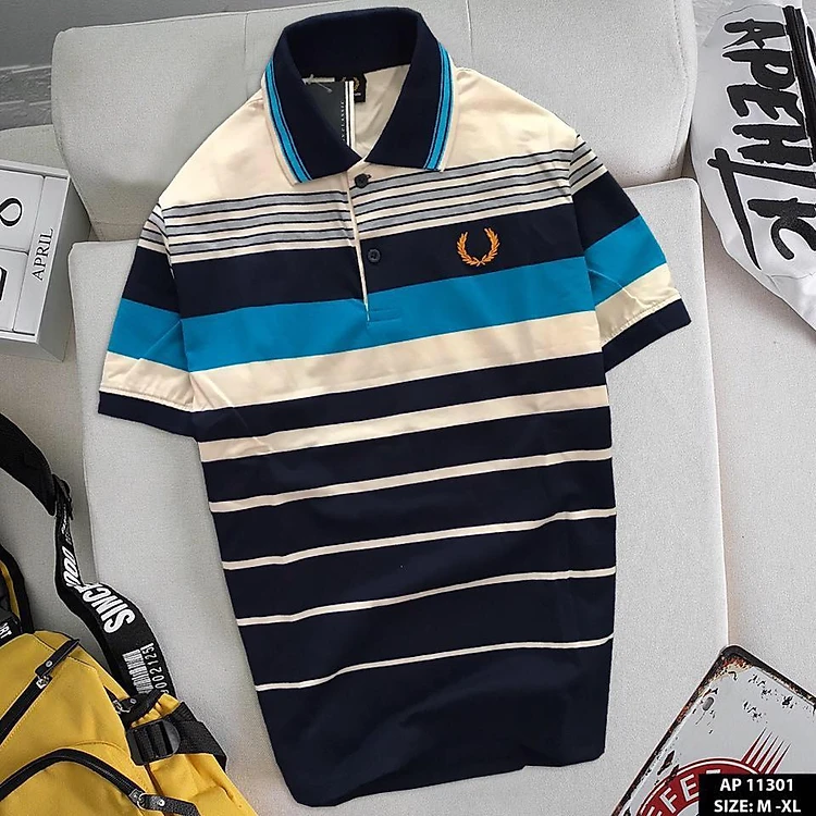ÁO THUN NAM COTTON PHỐI SỌC LOGO THÊU