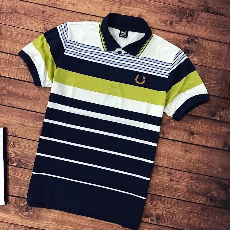 Áo Thun Nam Cotton Phối Sọc Ngang Logo Thêu Co Giãn Tốt