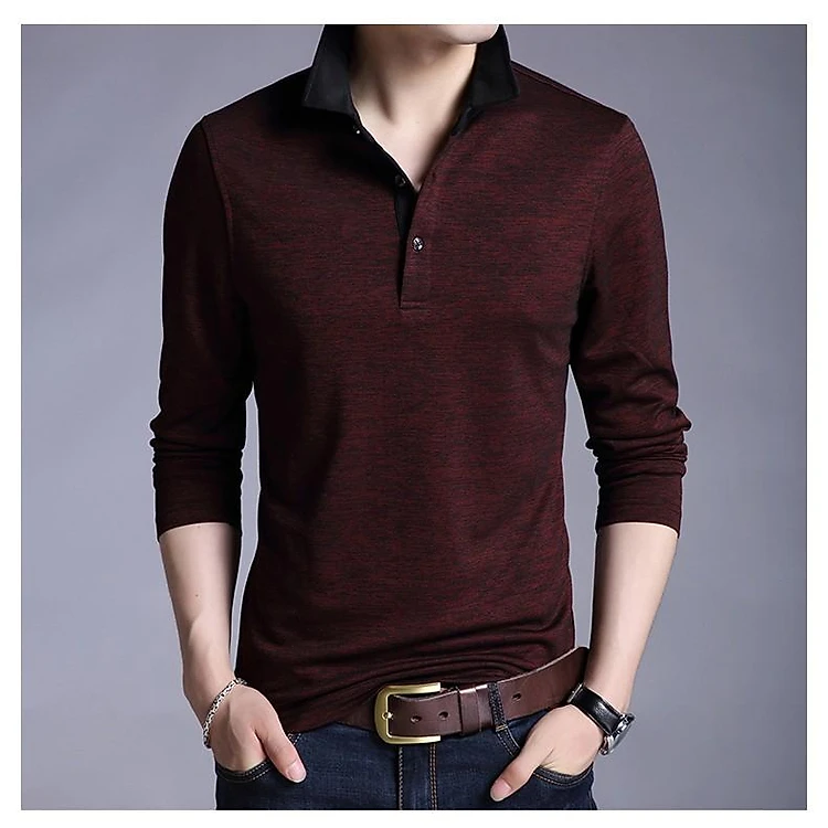 ÁO THUN NAM DÀI TAY CỔ SƠ MI PHONG CÁCH HÀN QUỐC ATD01-ĐỎ ĐÔ