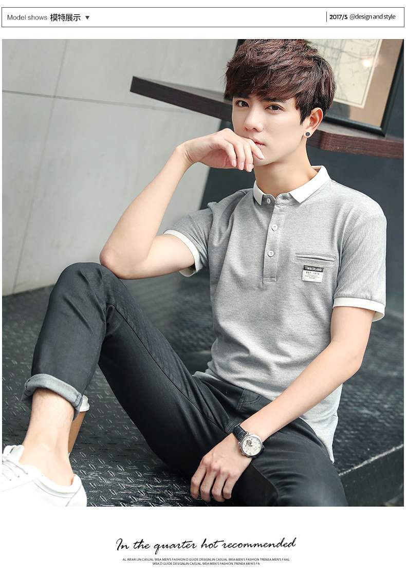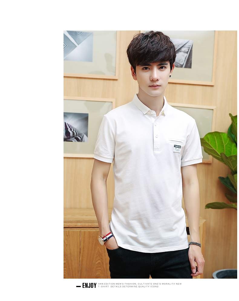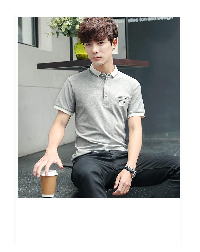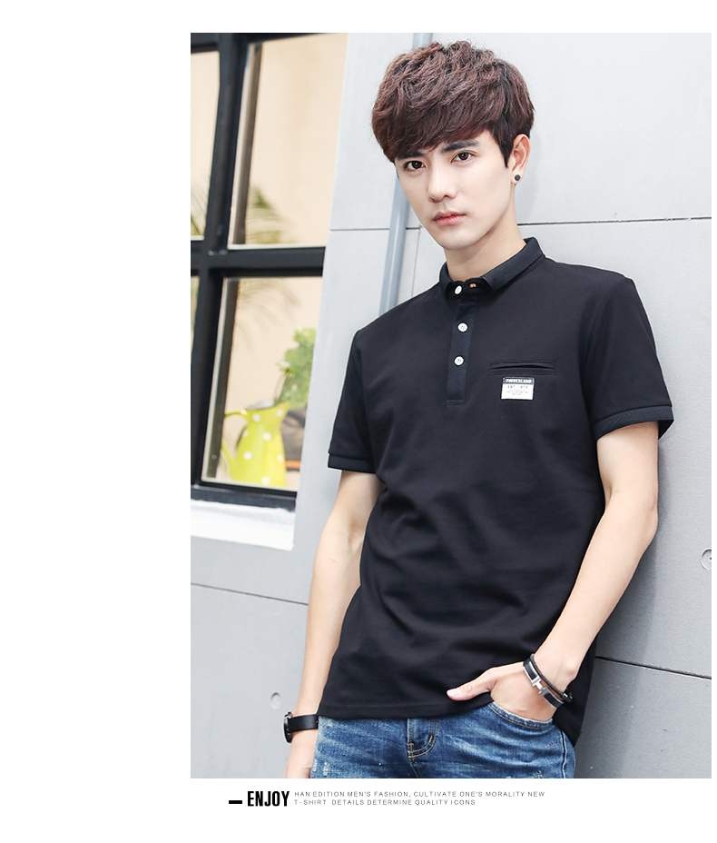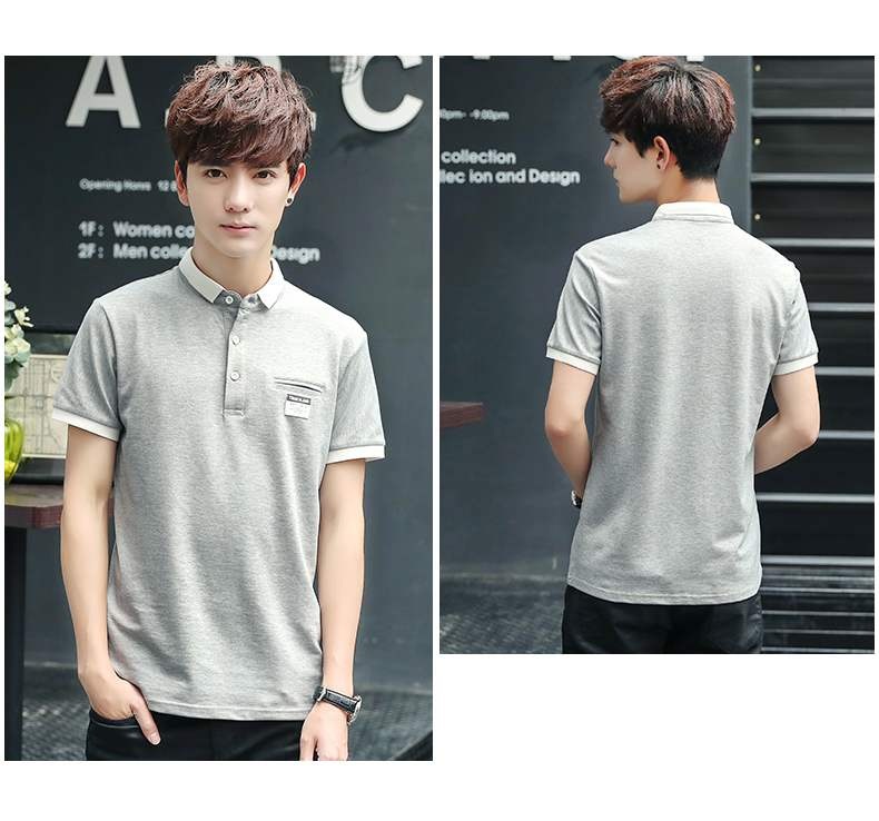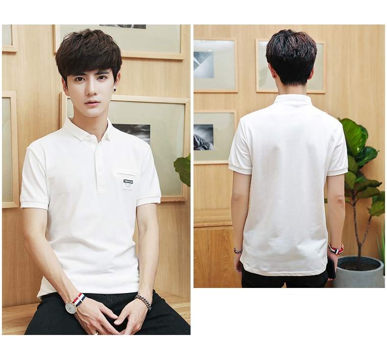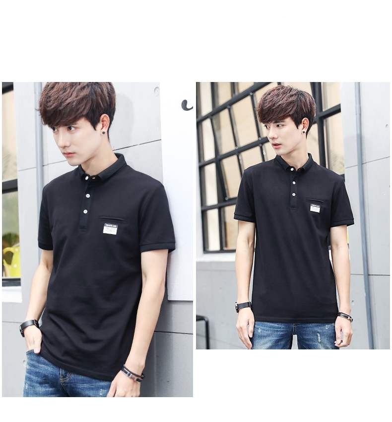 Áo thun nam ngắn tay cổ bẻ phối túi ngực giả, phong cách trẻ