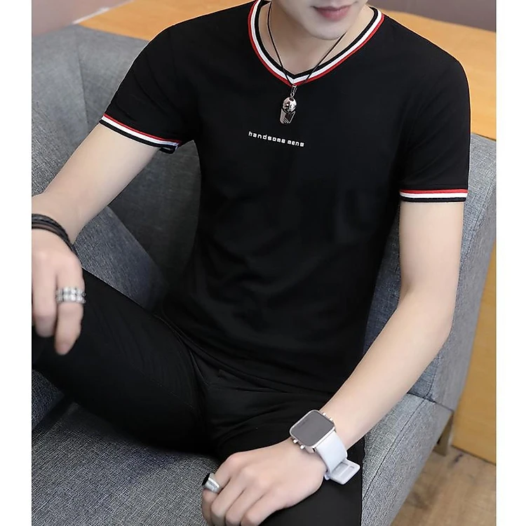 Áo thun nam ngắn tay cổ tim body thời trang Sitaki -Xám