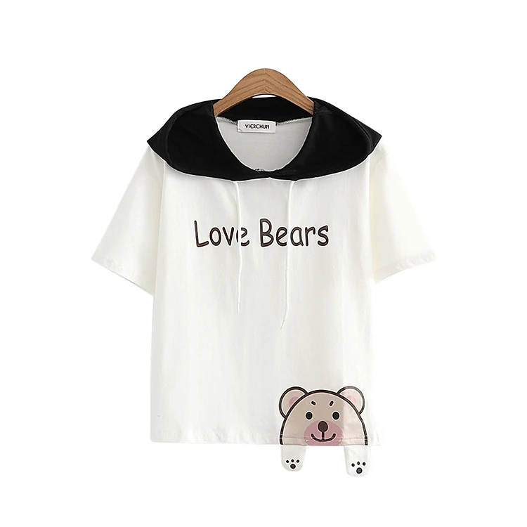 - Áo Thun Nữ Có Nón In Chữ Love Bears 848 sở hữu thiết áo có cổ, hình in xinh xắn, là lựa chọn không thể bỏ qua của các bạn nữ cho các buổi đi chơi, dã ngoại cuối tuần.
