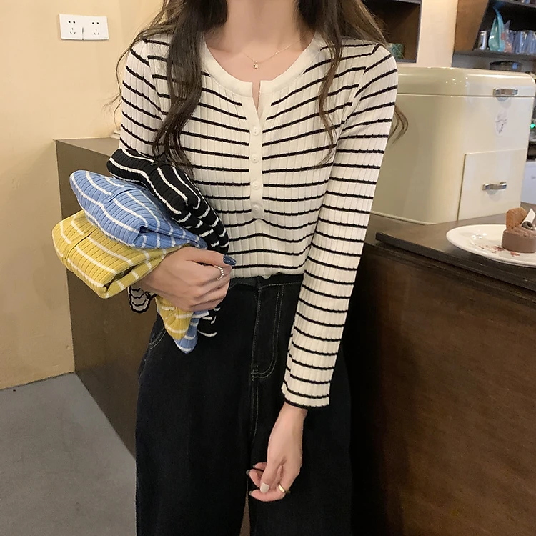 Áo Thun Nữ Dài Tay Form Rộng Freesize Kẻ Vàng