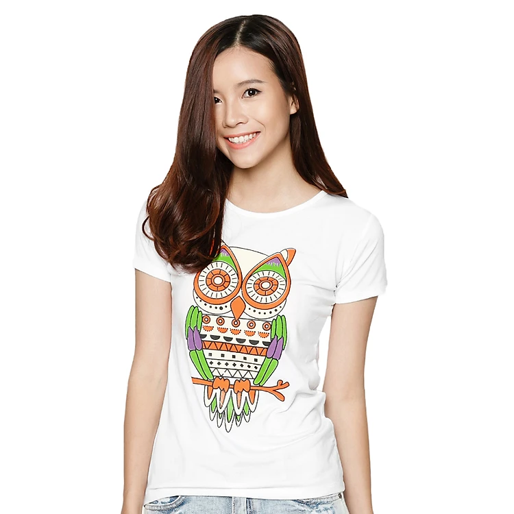 Áo Thun Nữ Họa Tiết Cú Mèo T&D D50 - Trắng