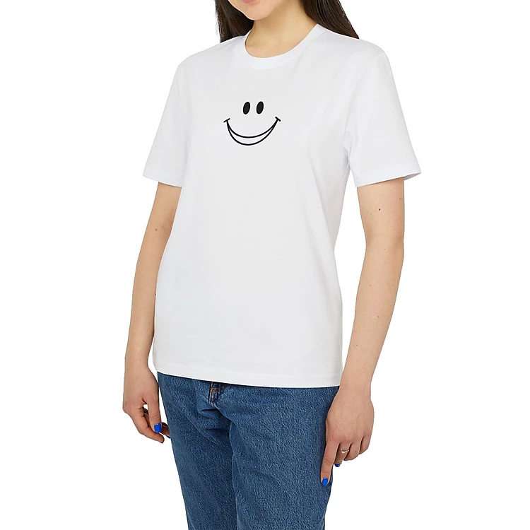 Áo Thun Nữ In Hình Miệng Cười Form Basic Tay Ngắn Cổ Tròn