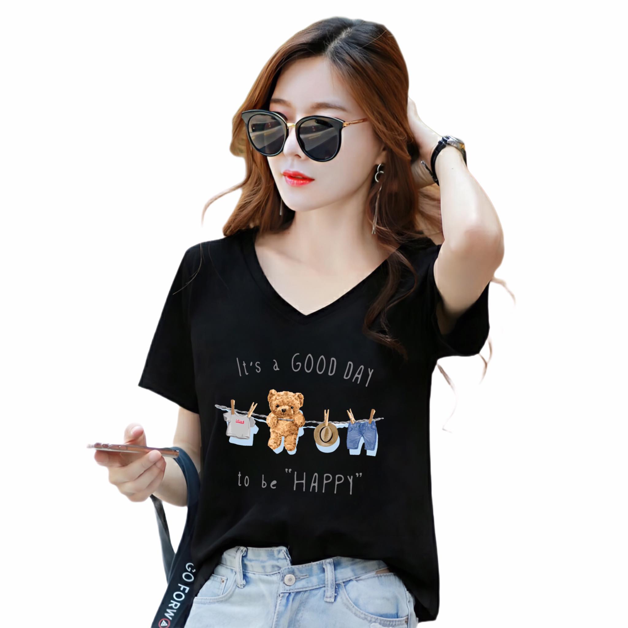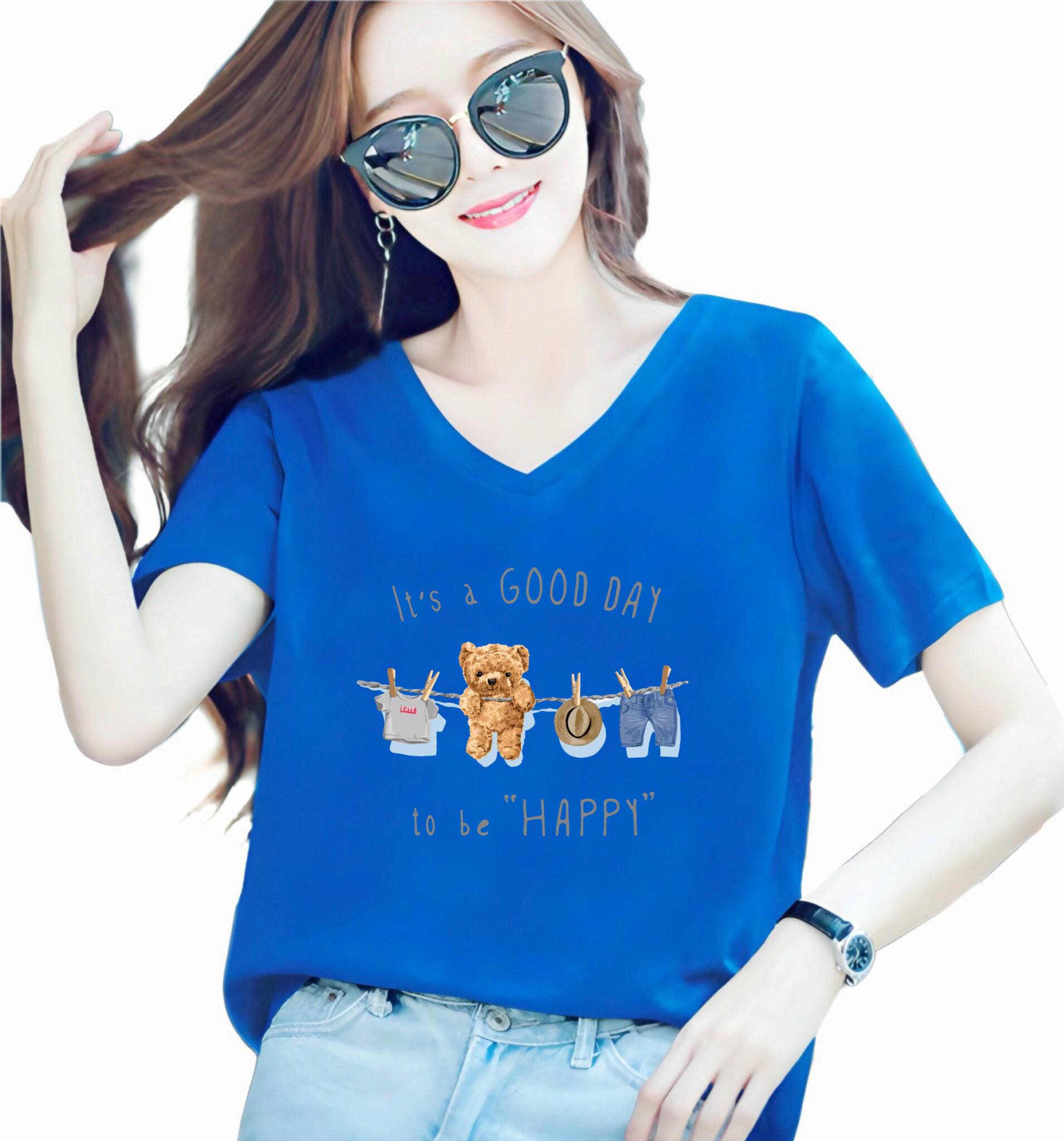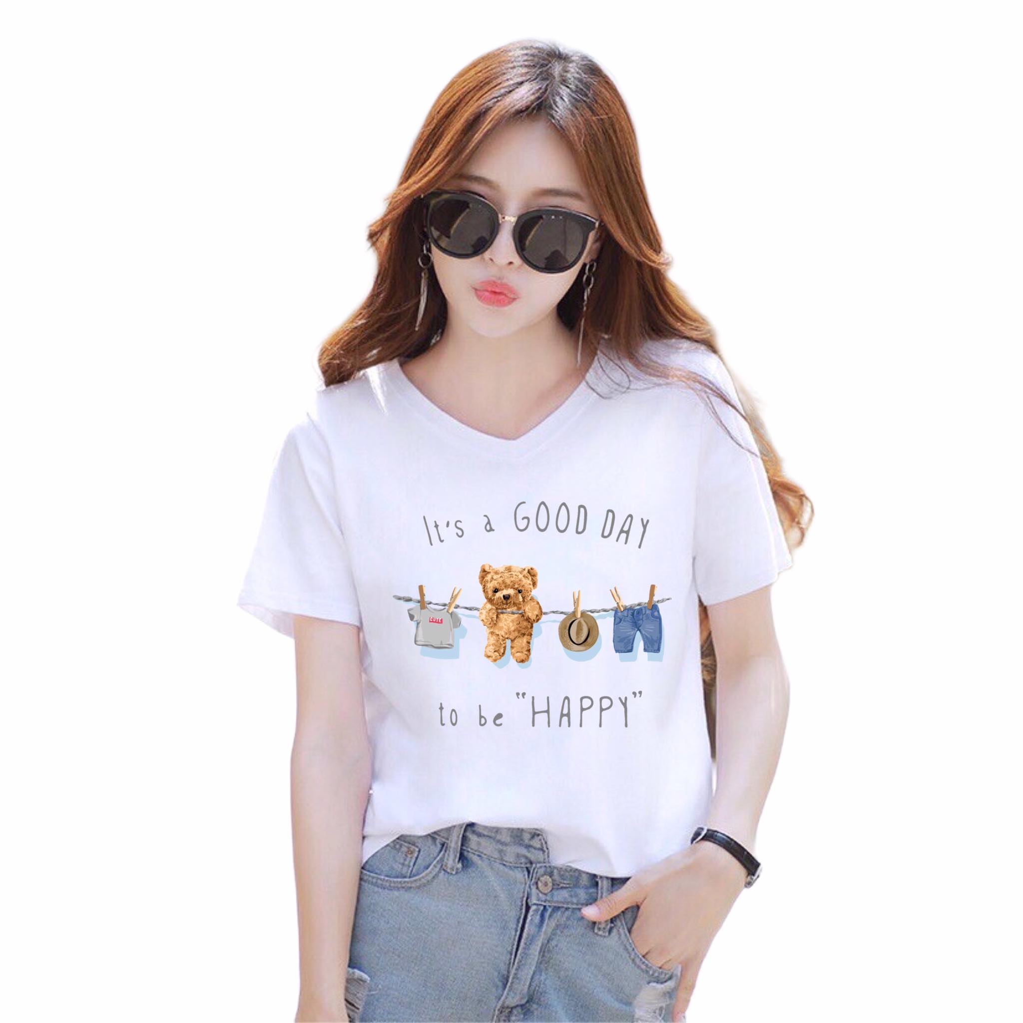 Áo thun nữ MXM cổ tim form rộng in hình Gấu dễ thương ( ANU086 )