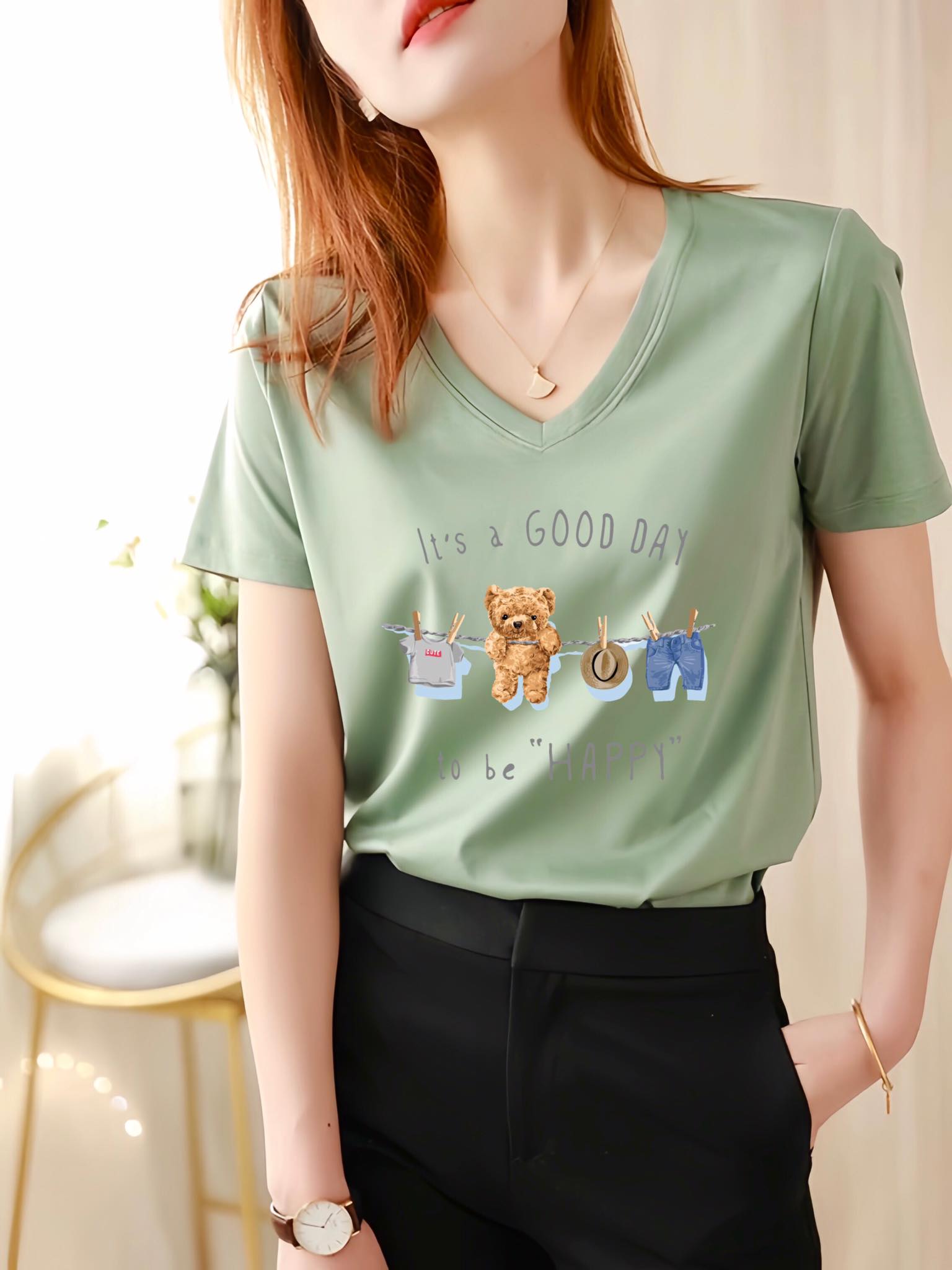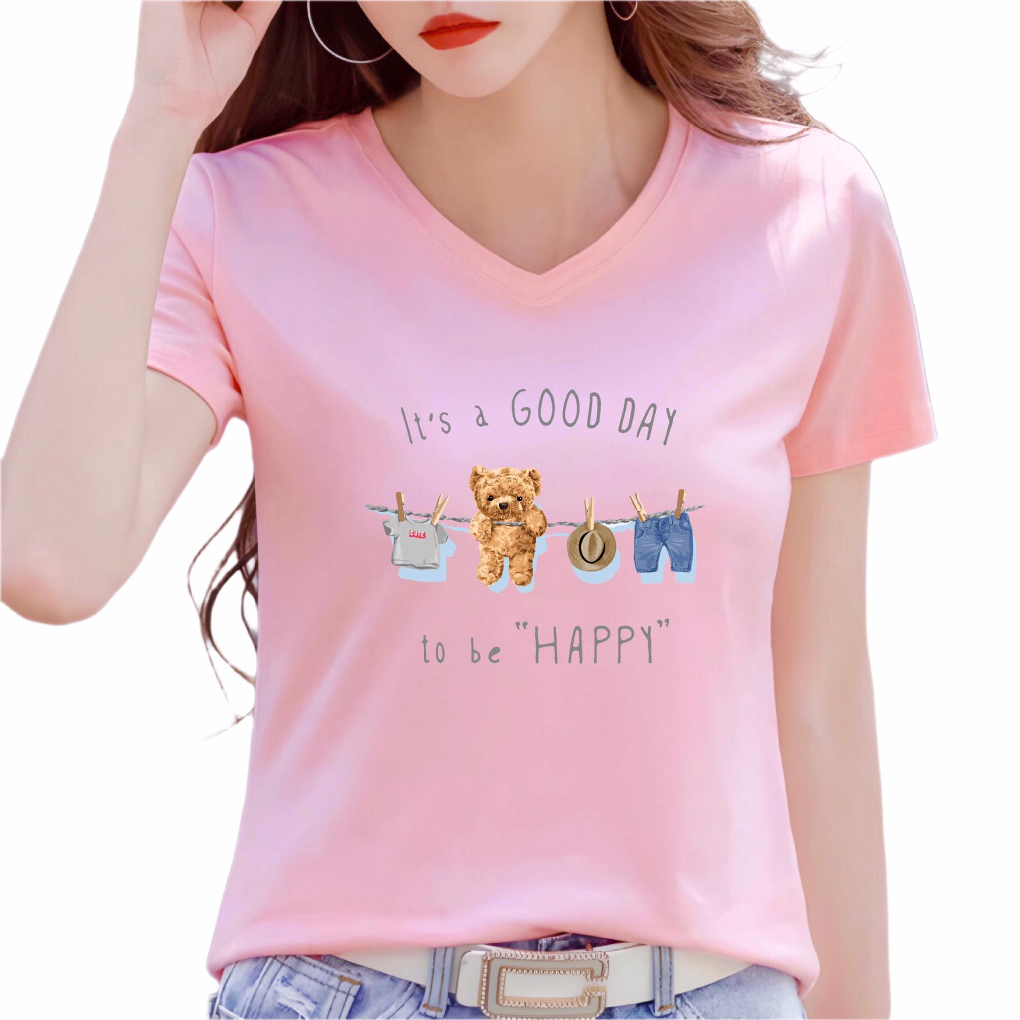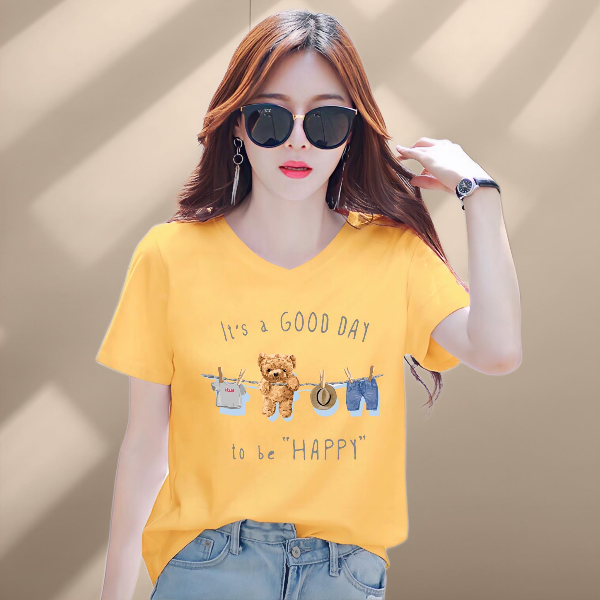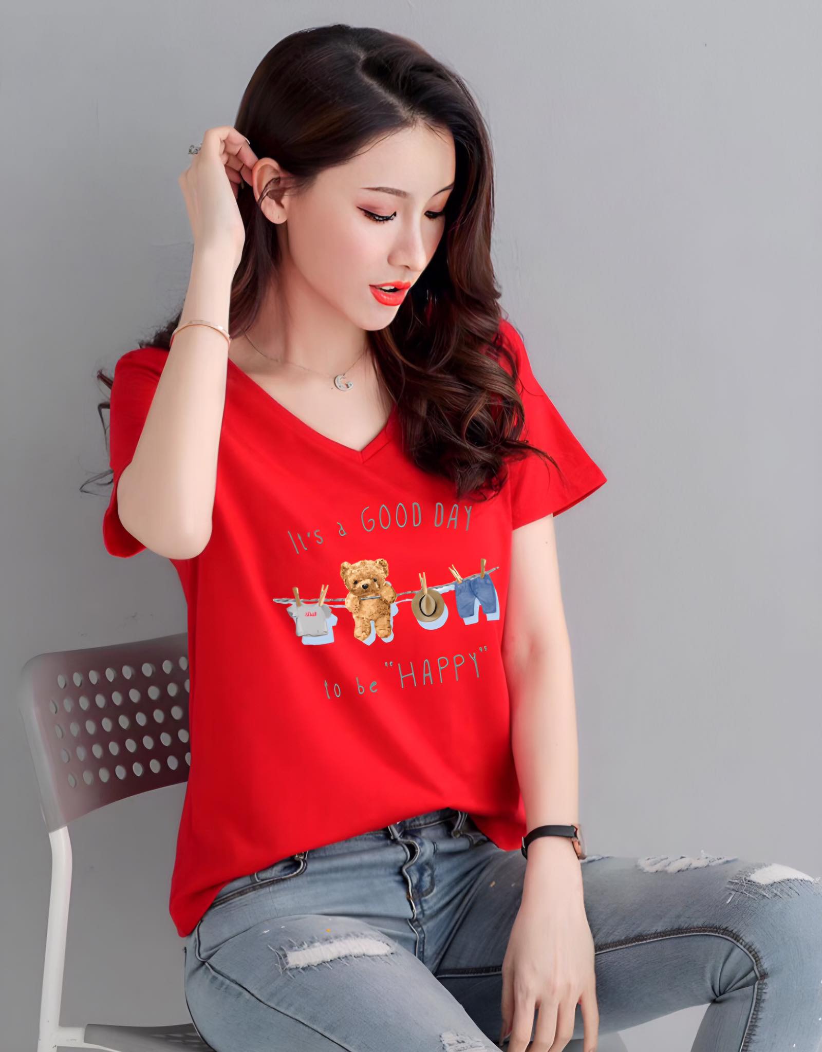 Áo thun nữ MXM cổ tim form rộng in hình Gấu dễ thương ( ANU086 )