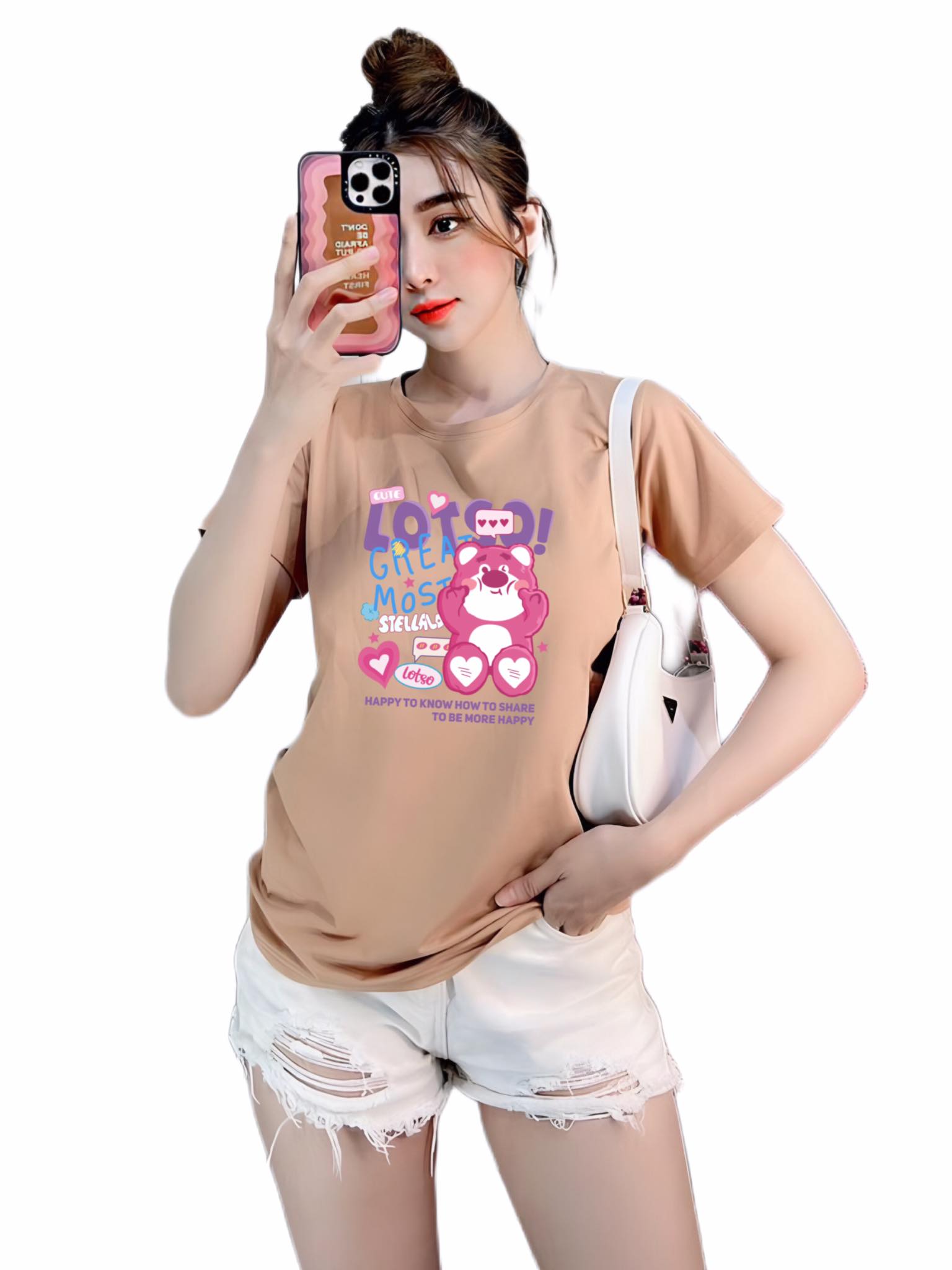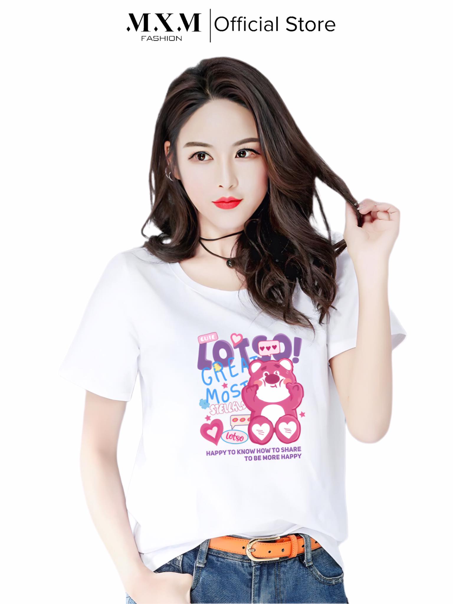 Áo thun nữ MXM cổ tròn form rộng in hình Gấu dễ thương trẻ trung ( ANU102 )