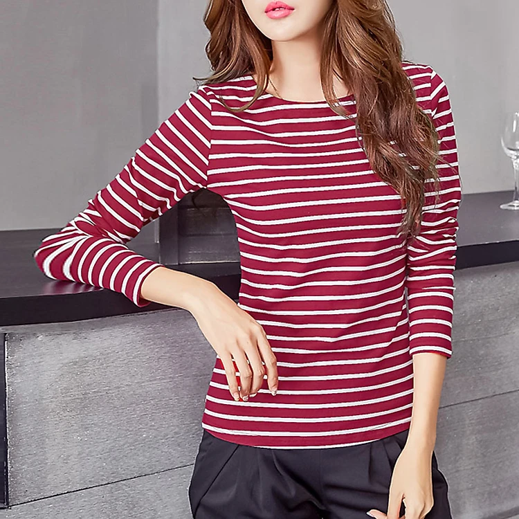 Áo Thun Nữ Sọc Ngang Cổ Tròn Tay Dài