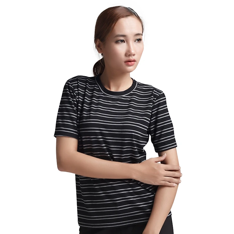 Áo Thun Nữ Sọc Tay Ngắn Labelle TN21 - Đen Sọc Xám