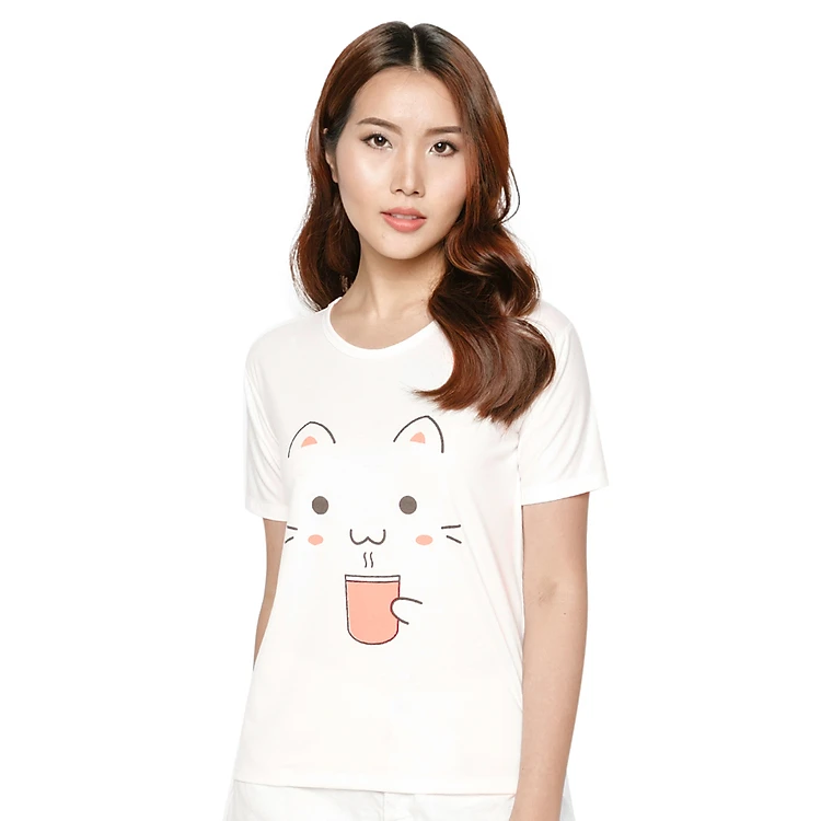 Áo Thun Nữ T&D D85 - Họa Tiết Mèo Xinh Xắn có kiểu dáng ngọt ngào với cổ tròn, phối tay ngắn tiện lợi cùng họa tiết chú mèo con nơi ngực áo, tạo phong cách thời trang đáng yêu cho bạn gái. Áo có màu trắng thanh lịch, có thể mặc cùng nhiều loại trang phục khác nhau như: Quần Jeans, Shorts Jeans, Váy ngắn, Quần Legging thể thao,...