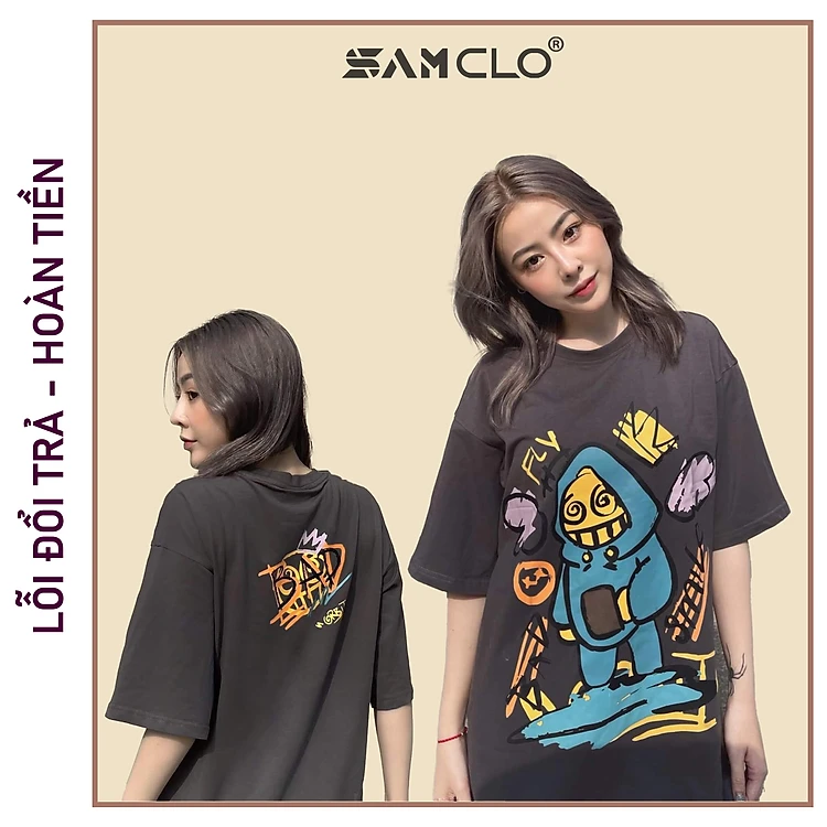 Áo thun nữ tay lỡ SAM CLO freesize phông form rộng dáng Unisex - áo lớp, nhóm, couple in chữ bad NGƯỜI MÀU XANH - MÀU XÁM