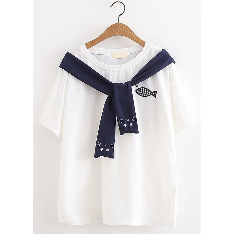 Áo Thun Nữ Thủy Thủ Thêu Cá K92
