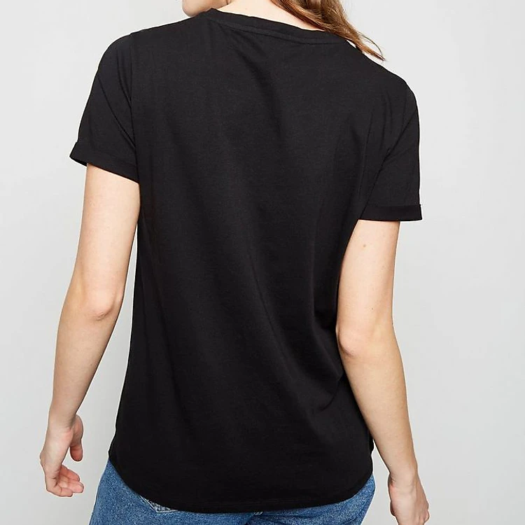 Áo Thun Nữ Trơn Màu Đen Tay Ngắn Cổ Tròn Form Basic Chuẩn Size