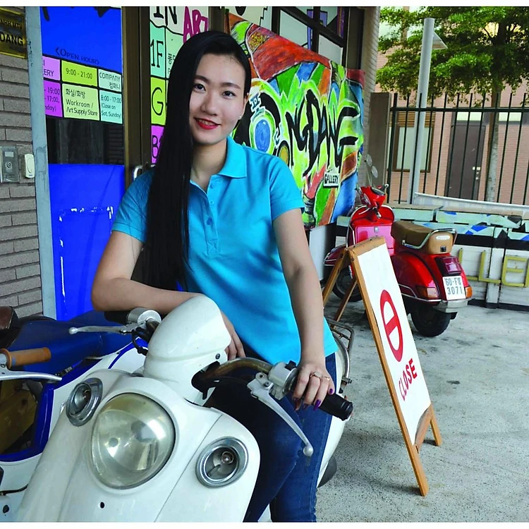 Áo thun nữ vải cá sấu co giãn 4 chiều, kiểu may cao cấp cổ bẻ, tay bo, có xẻ lai - Màu xanh dương đậm