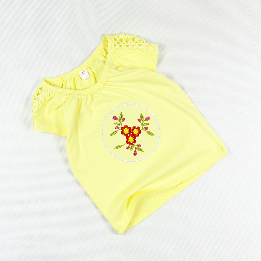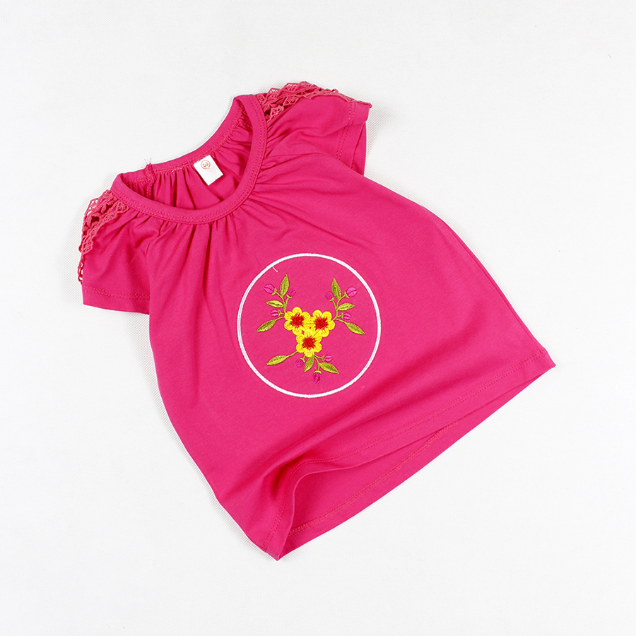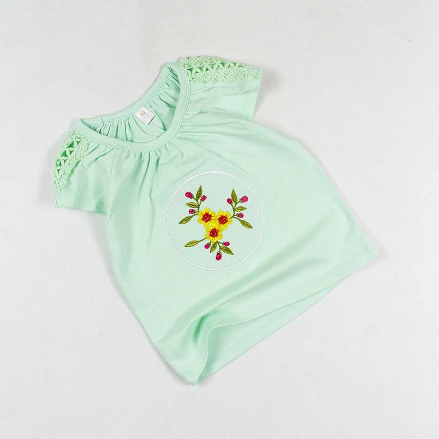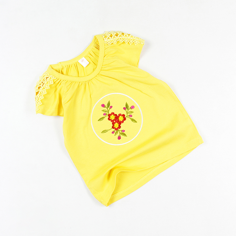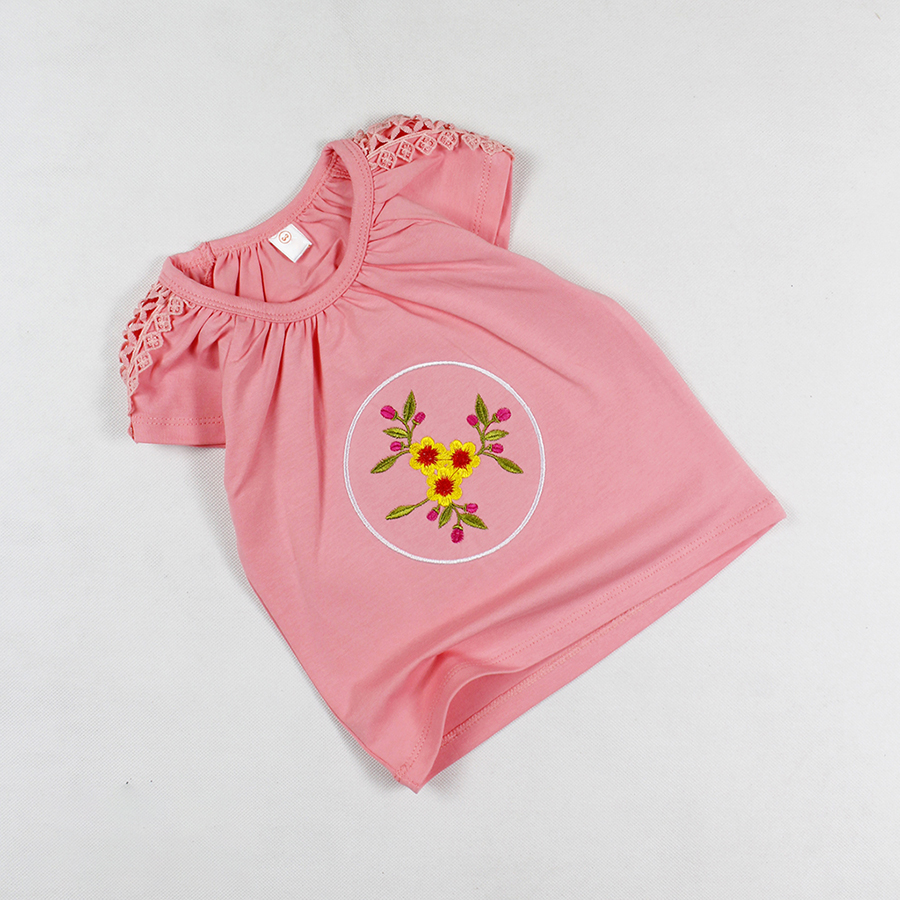 Áo thun phối ren thêu hoa tay ngắn siêu cưng cho bé gái 0.5-7 tuổi từ 10 đến 24 kg 05615-05605