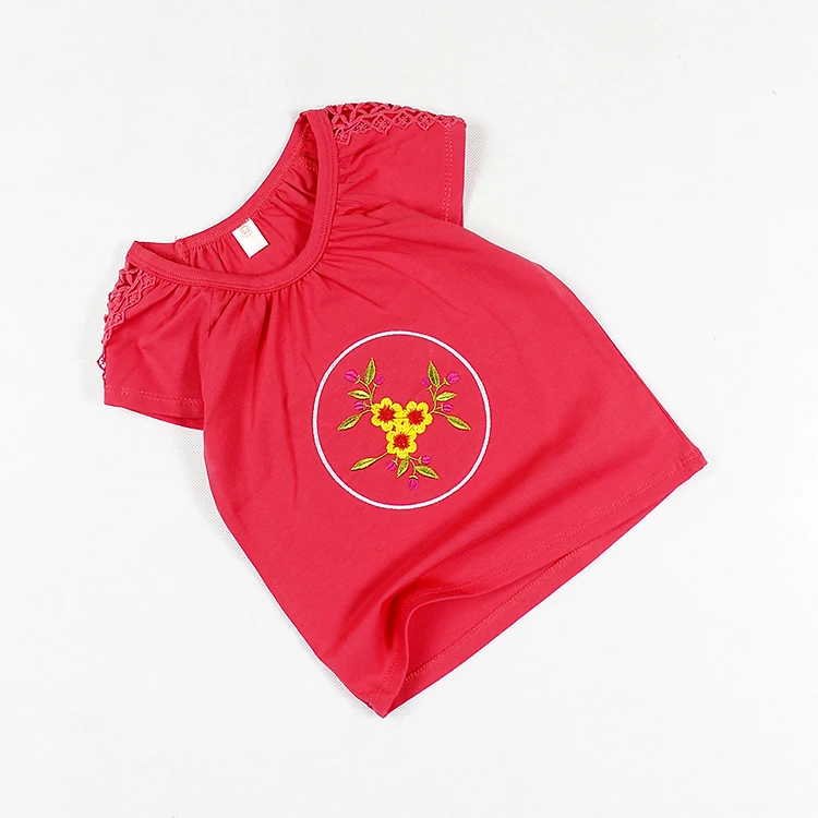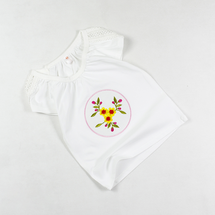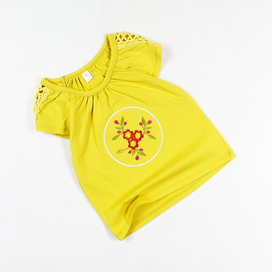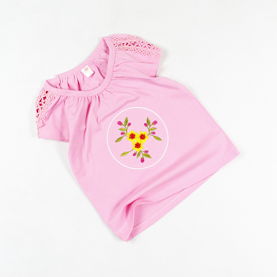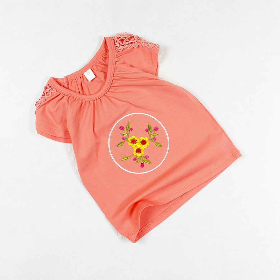 Áo thun phối ren thêu hoa tay ngắn siêu cưng cho bé gái 0.5-7 tuổi từ 10 đến 24 kg 05615-05605