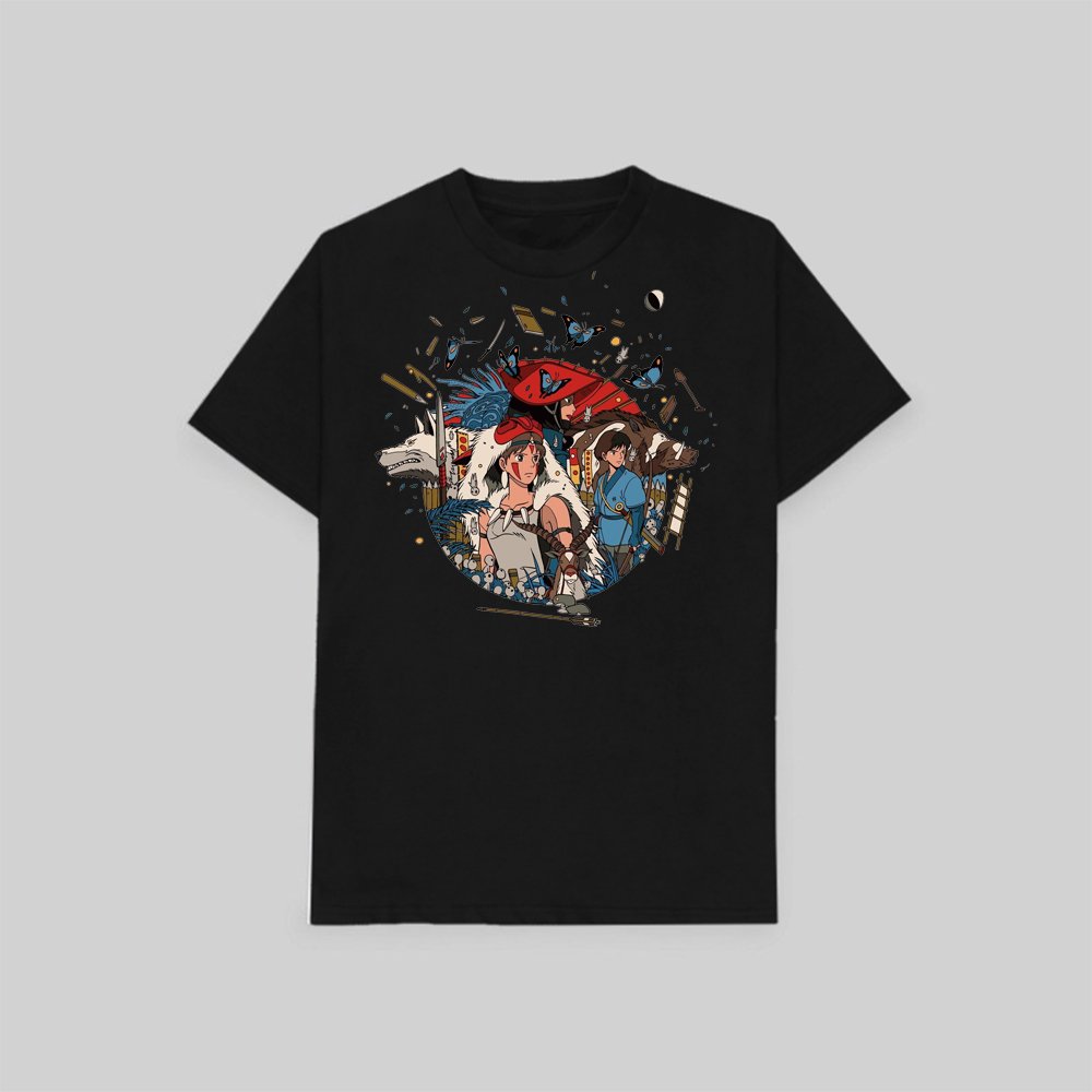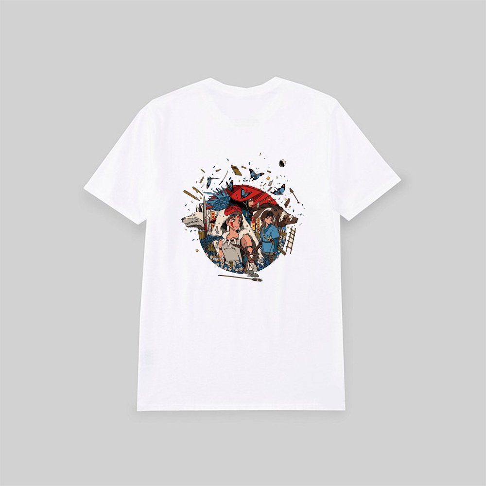 Áo thun phông đen trắng in hình Mononoke Hime Công Chúa anime chibi