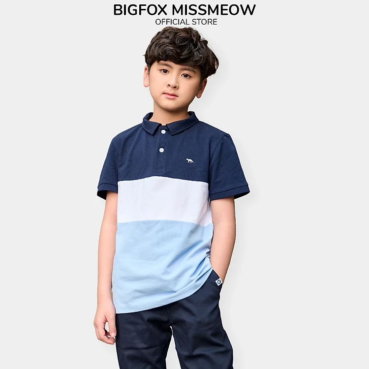 Áo thun Polo bé trai ngắn tay size đại Bigfox Miss Meow vải cá sấu cotton cổ bẻ phối màu cỡ trẻ em 7-15 tuổi 30kg 40kg