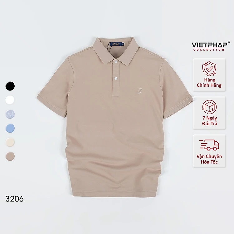 Áo Polo Nam VIỆT PHÁP Form Basic Chất liệu Cotton Pique co giãn thấm hút mồ hồi tốt 3206