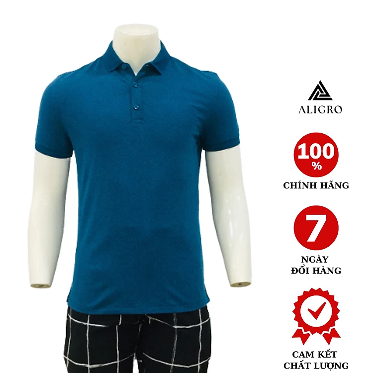 Áo thun polo nam cộc tay trơn màu xanh aligro ALGPLO29