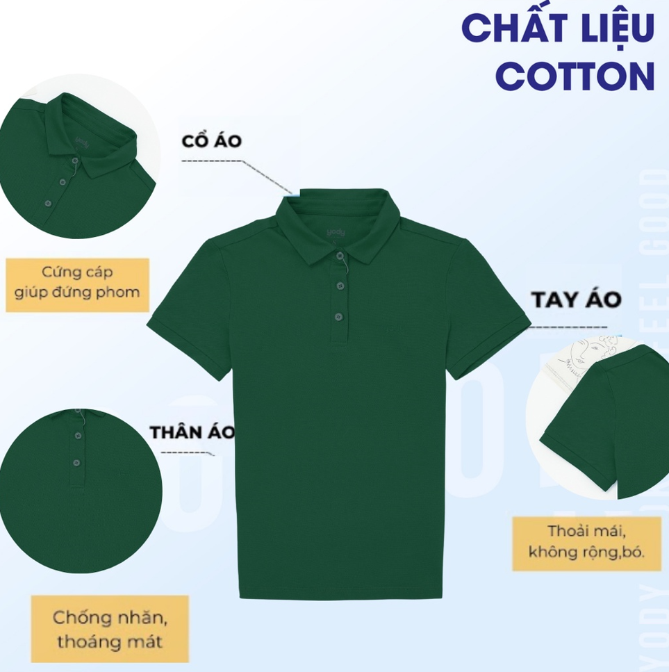 Áo thun polo nữ YODY phông cộc tay, dáng basic có cổ chất vải cotton mềm mịn thoáng khí APN5398