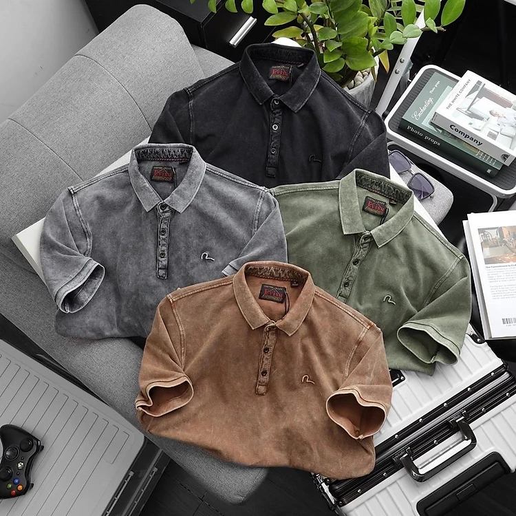 Áo thun polo wash bụi E.V.I.S.U_phượt_dã ngoại