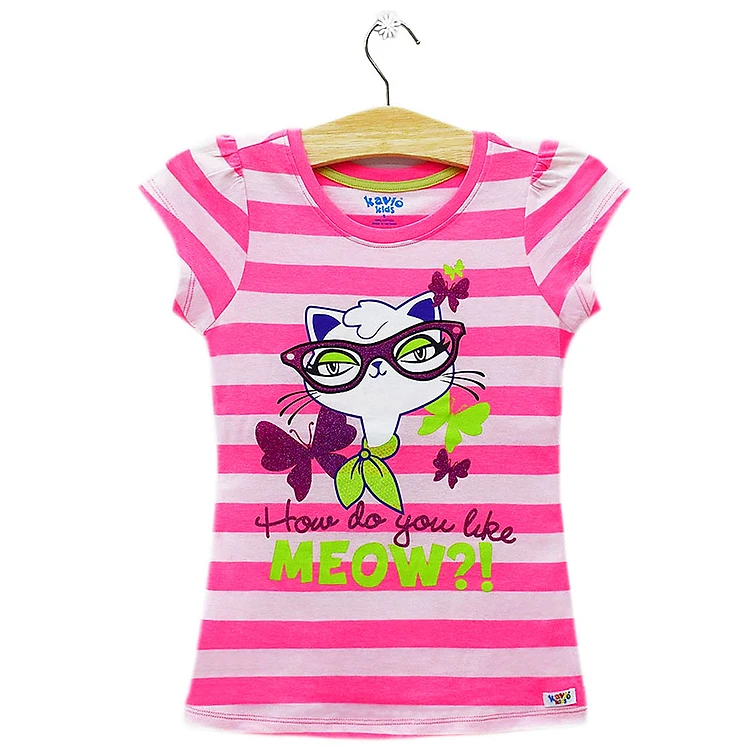 Áo Thun Sọc Ngang Bé Gái In Hình Mèo Kavio Kids GS22-N2 - Hồng