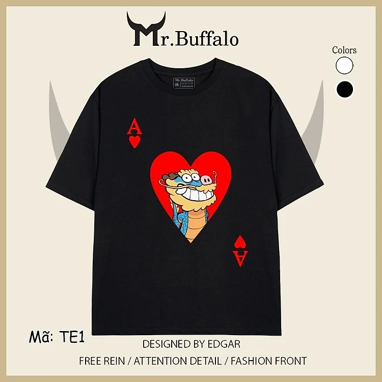 Áo Thun tay lỡ trắng đen hình A cơ tết 2024 rồng TE1 Mr.Buffalo