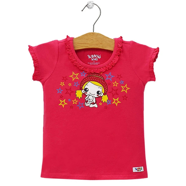 Áo Thun Tay Ngắn Bé Gái In Hình Cô Bé Kavio Kids GS558-N1 - Hồng Đậm