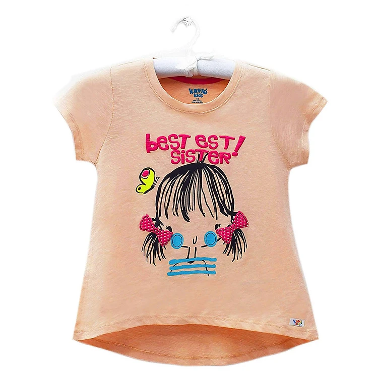 Áo Thun Tay Ngắn Bé Gái Kavio Kids GL18-N2 - Kem in hình ảnh chú bươm bướm cùng dòng chữ Best Sister mang đến vẻ đáng yêu cho bé khi mặc. Áo có màu kem nhẹ nhàng cho bé vẻ thanh lịch hơn. Kiểu dáng áo đơn giản với cổ tròn, tay ngắn dễ mặc và dễ phối đồ.