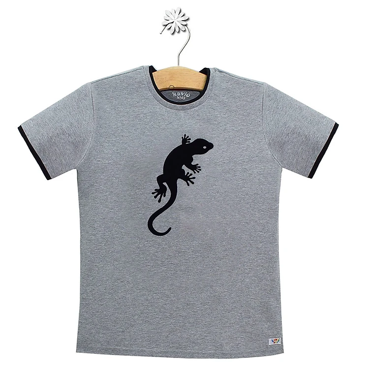 Áo Thun Tay Ngắn Bé Trai In Hình Thằn Lằn Kavio Kids In Hình BS45-N2 – Xám