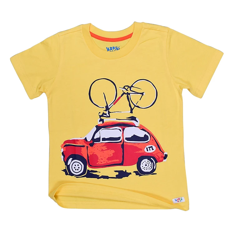 Áo Thun Tay Ngắn Bé Trai Kavio BS142-N1 In Hình Xe Hơi có kiểu dáng cổ tròn, tay ngắn thoáng mát, dễ dàng phối cùng nhiều loại quần và giày dép khác nhau khi bé đến trường hay dạo phố cùng ba mẹ. Sản phẩm sẽ thu hút ngay ánh nhìn của các bé trai bởi hình ảnh xe hơi cách điệu hiện đại được in nổi bật phía trước. Áo may từ 100% thun cotton bền đẹp cùng đường may tỉ mỉ, vừa an toàn với làn da bé vừa mang lại độ bền lâu dài.