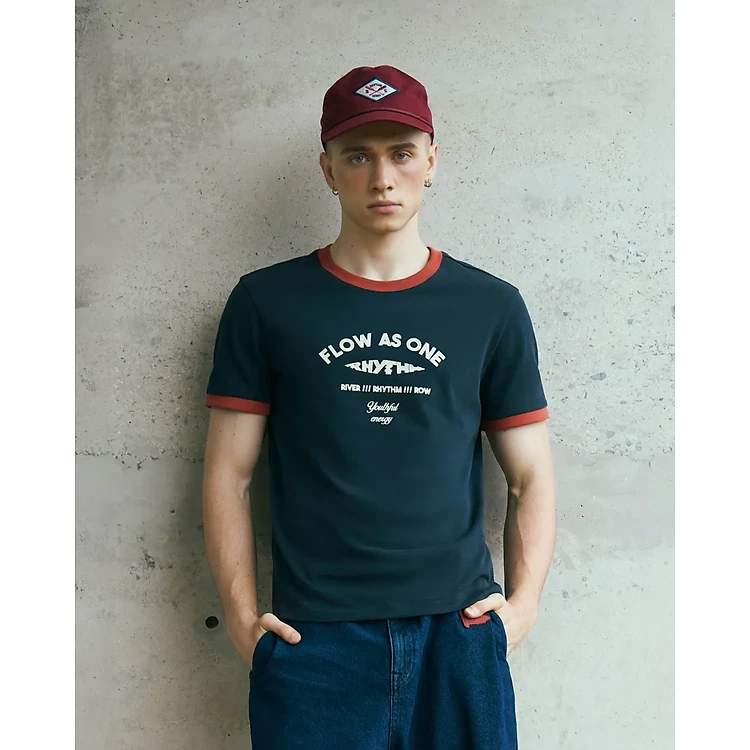 Áo thun tay ngắn nam phối rib hình in .Fitted - ROUTINE 10F25TSS046