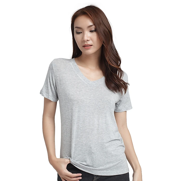 Áo Thun Trơn Cổ Tim Labelle TN19 - Xám được may kiểu cổ tim, tay ngắn, màu xám trơn đơn giản. Thiết kế basic này tạo sự dễ dàng và thoải mái trong việc phối đồ. Tùy ý thích mà bạn gái có thể kết hợp áo cùng chân váy, quần jeans hay quần short ngắn để đi chơi, đi dạo phố cùng bạn bè.