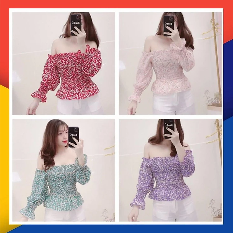 Áo trễ vai hoa nhí quyến rũ siêu đẹp - hình thật