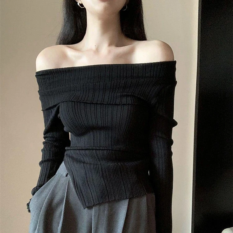 - Chất liệu:Áo trễ vai tay dài được may từ vải thun gân tăm dày dặn