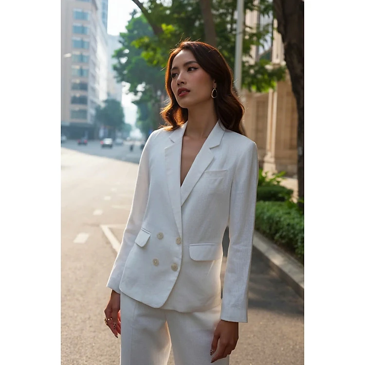 Áo Vest Blazer Nữ Linen Trắng Thanh Lịch, Áo Khoác Blazer Linen An Nam Top169